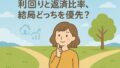 理由 → 投資は「良い年」と「悪い年」の平均で続きます。比率が高い=悪い時の打撃が大きい。金利の選び方でも継続性は変わるので、固定か変動かは続けやすさ”基準”で検討を